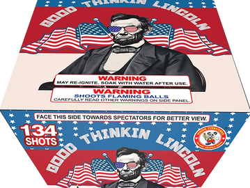 Winda Product-130 shots-Patriotic salute to the great Abraham Lincoln with silver palm changing to red/blue pearls, blue changing to red strobe/white strobe, heavy and intense shooting of red pearls/white strobe/blue pearls/white lace/chrys.