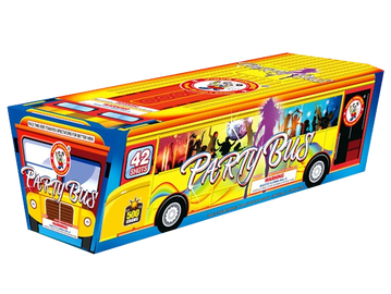 Winda Product-42 shots-Climb aboard the party bus with 42 shots of big breaks of color peony with lace pistil, crackling willow with color strobes, gold kiku with green strobes and a finale of massive brocade crowns with colorful falling leaves!